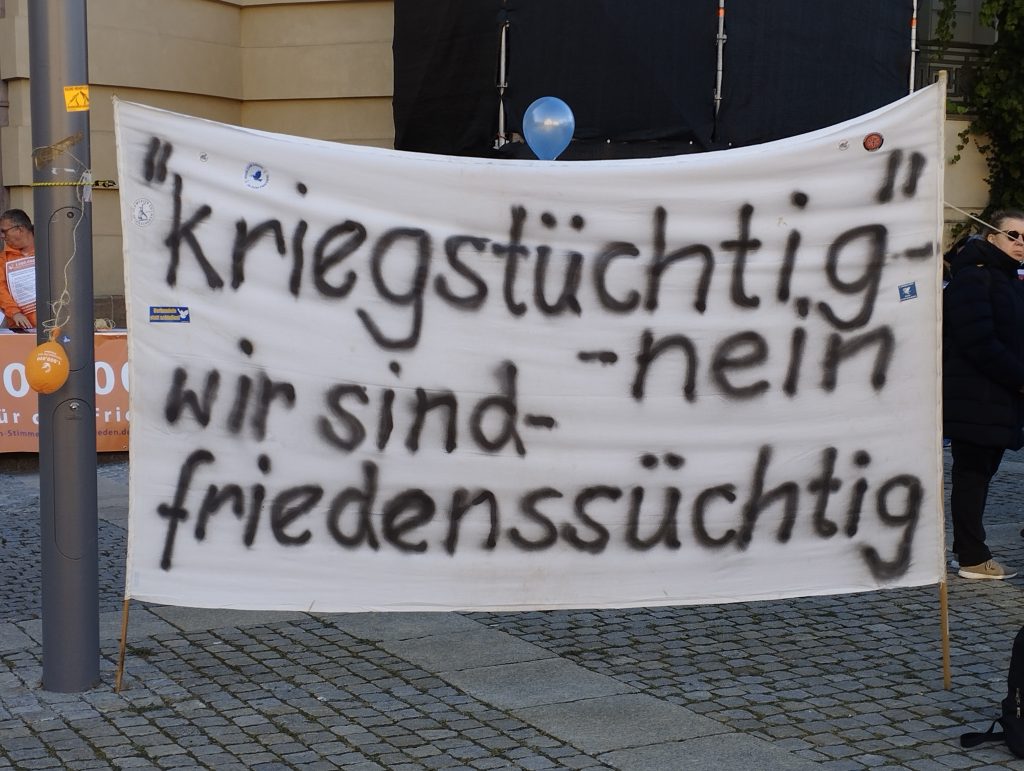 An kleinen Gegendemonstrationen (GEGEN DEN FRIEDEN!!!) beteiligten sich ProUkraine-Gruppen, Pro Israel und – besonders interessannt – Omas-gegen-Rechts.