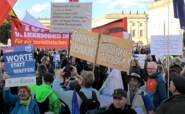 Wie schon im letzten Jahr fanden auch in diesem am 3 Oktober wieder bundesweite Demonstrationen für den Frieden und gegen die Kriege in der Ukraine und dem Gaza-Streifen statt. Diesmal in Berlin und Stuttgart zeitgleich. An beiden Veranstaltungen beteiligten sich ca 35 Tausend Menschen.
